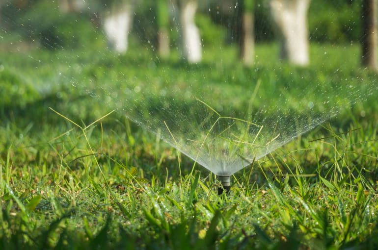 Как только вы посеяли газонную траву, полейте почву мелкокапельным или мелкодисперсным способом. Ваша задача сделать это аккуратно и не переусердствовать — не создать луж, не размыть семена. Для правильного полива понадобятся специальные насадки на шланг.